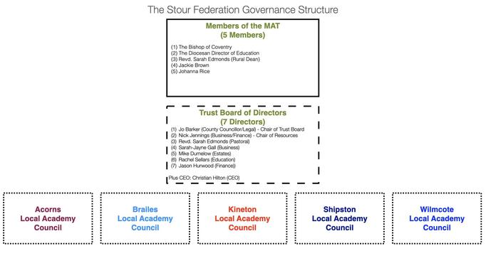 The Stour Federation Multi Academy Trust has three levels of governance, to hold the CEO and Heads to account, and to ensure that the Trust operates as a charity and a limited company should do.
